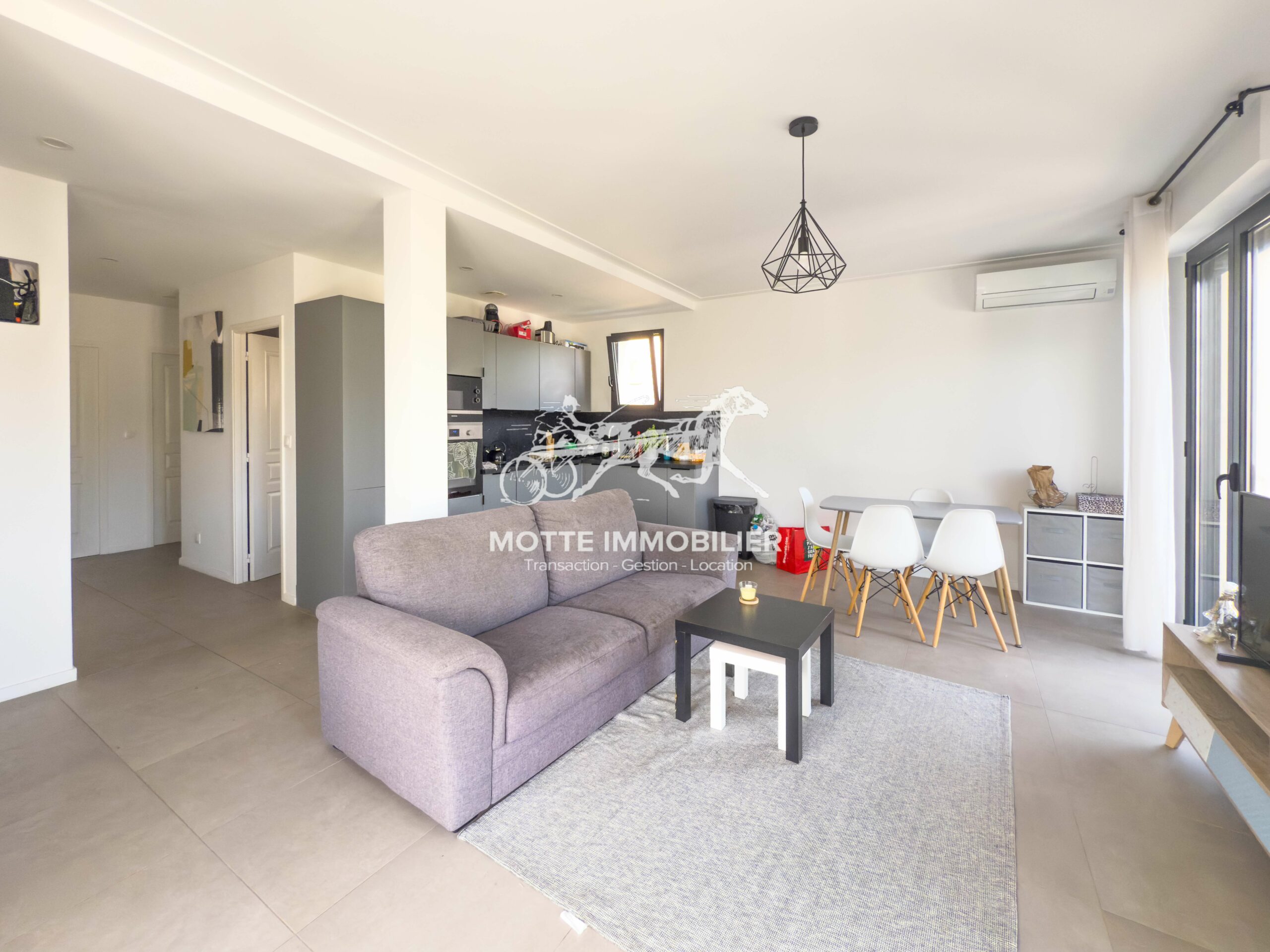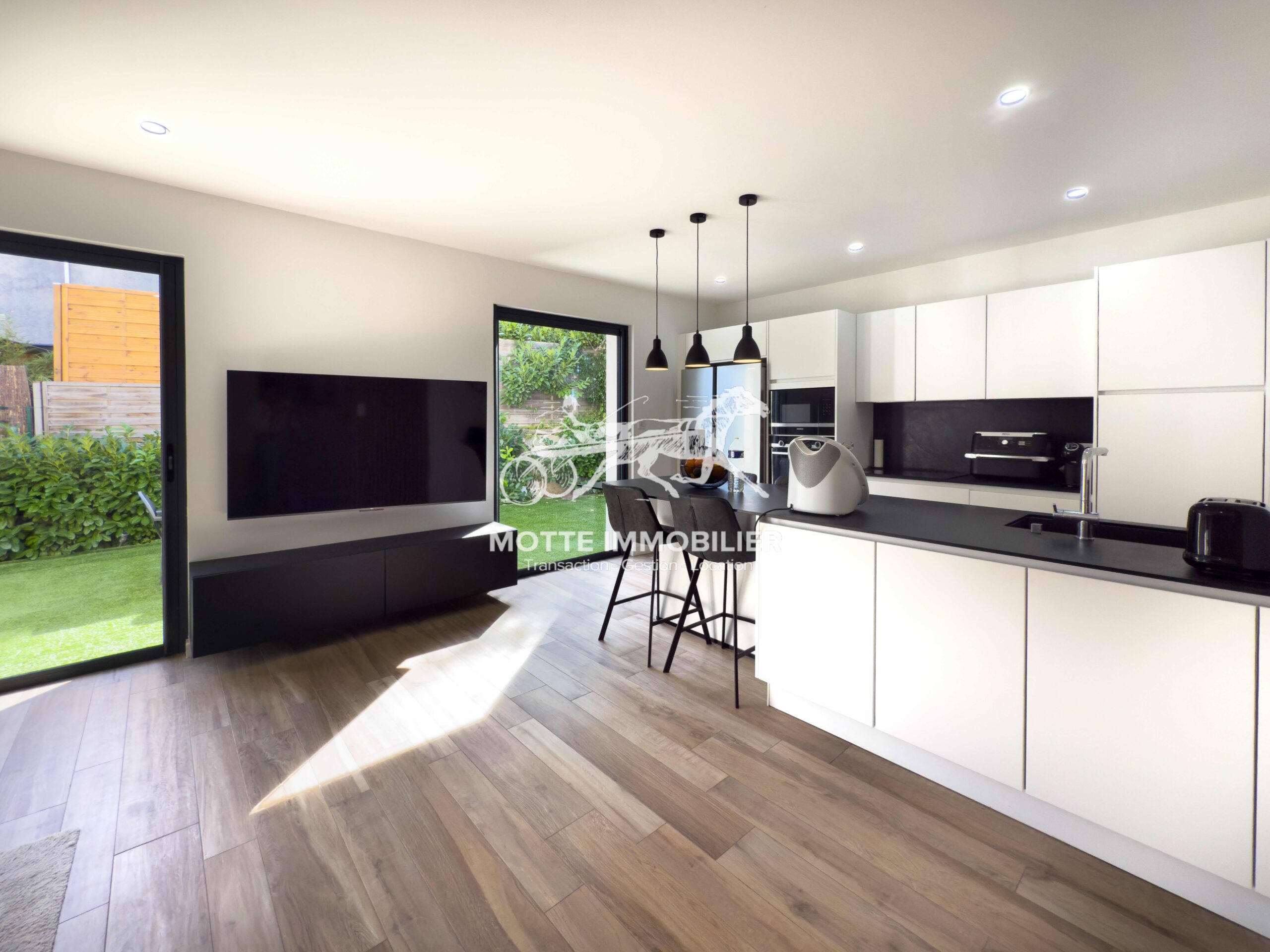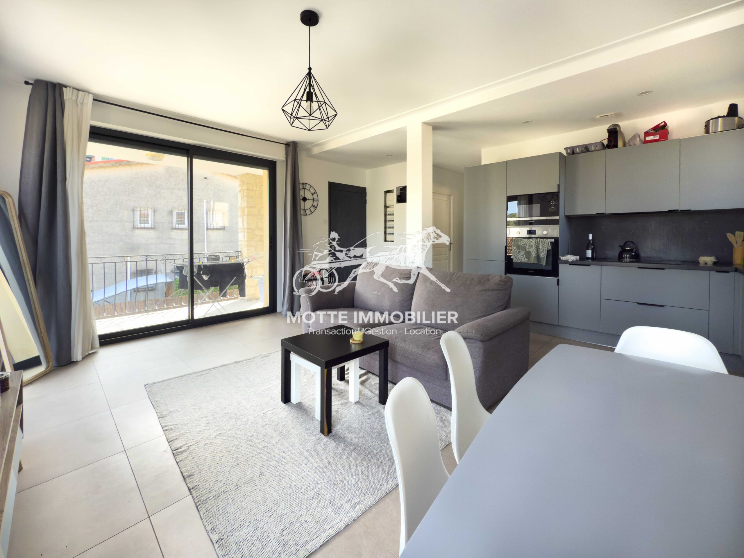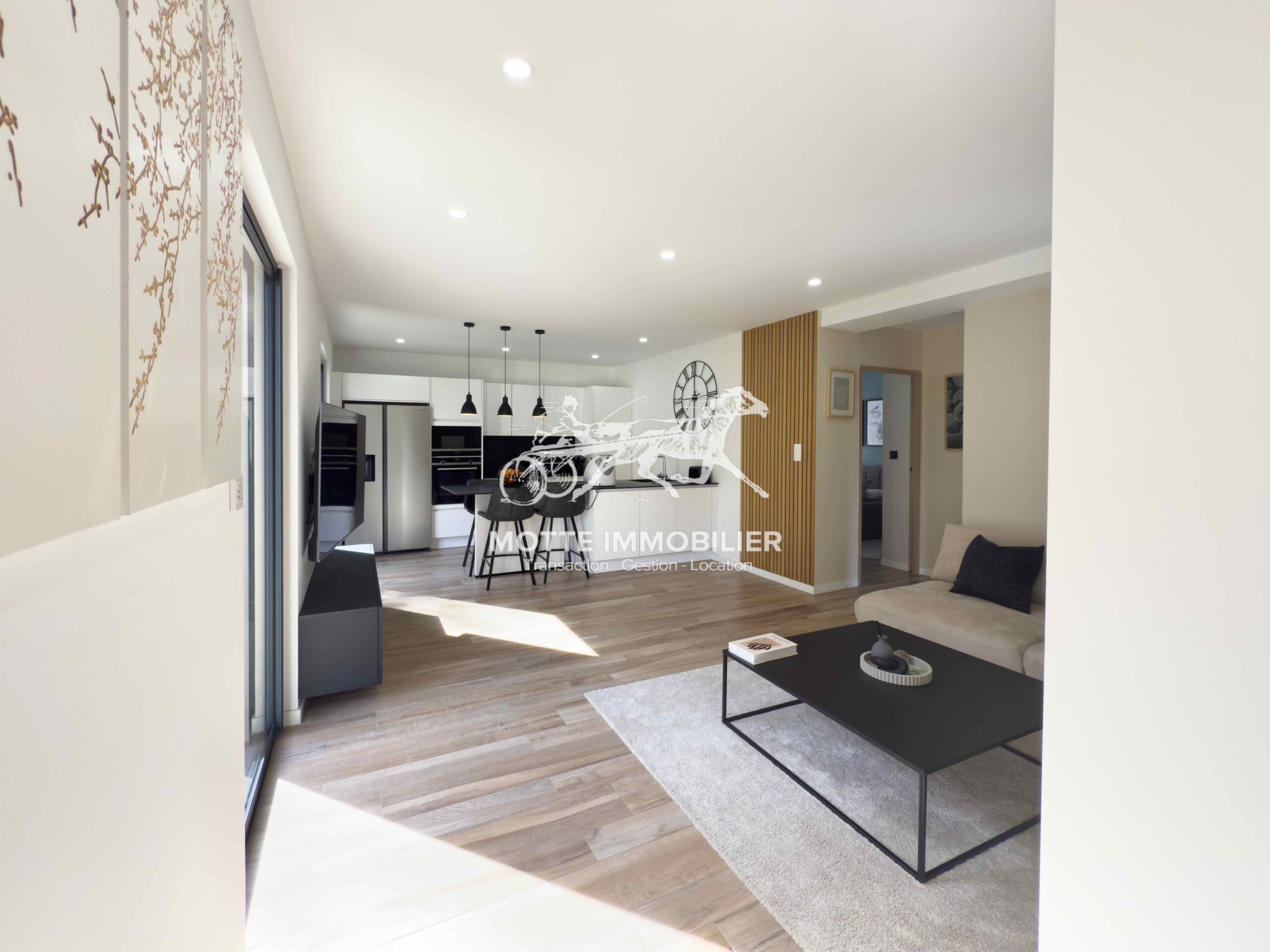 – Un séjour lumineux avec cuisine ouverte aménagée et équipée