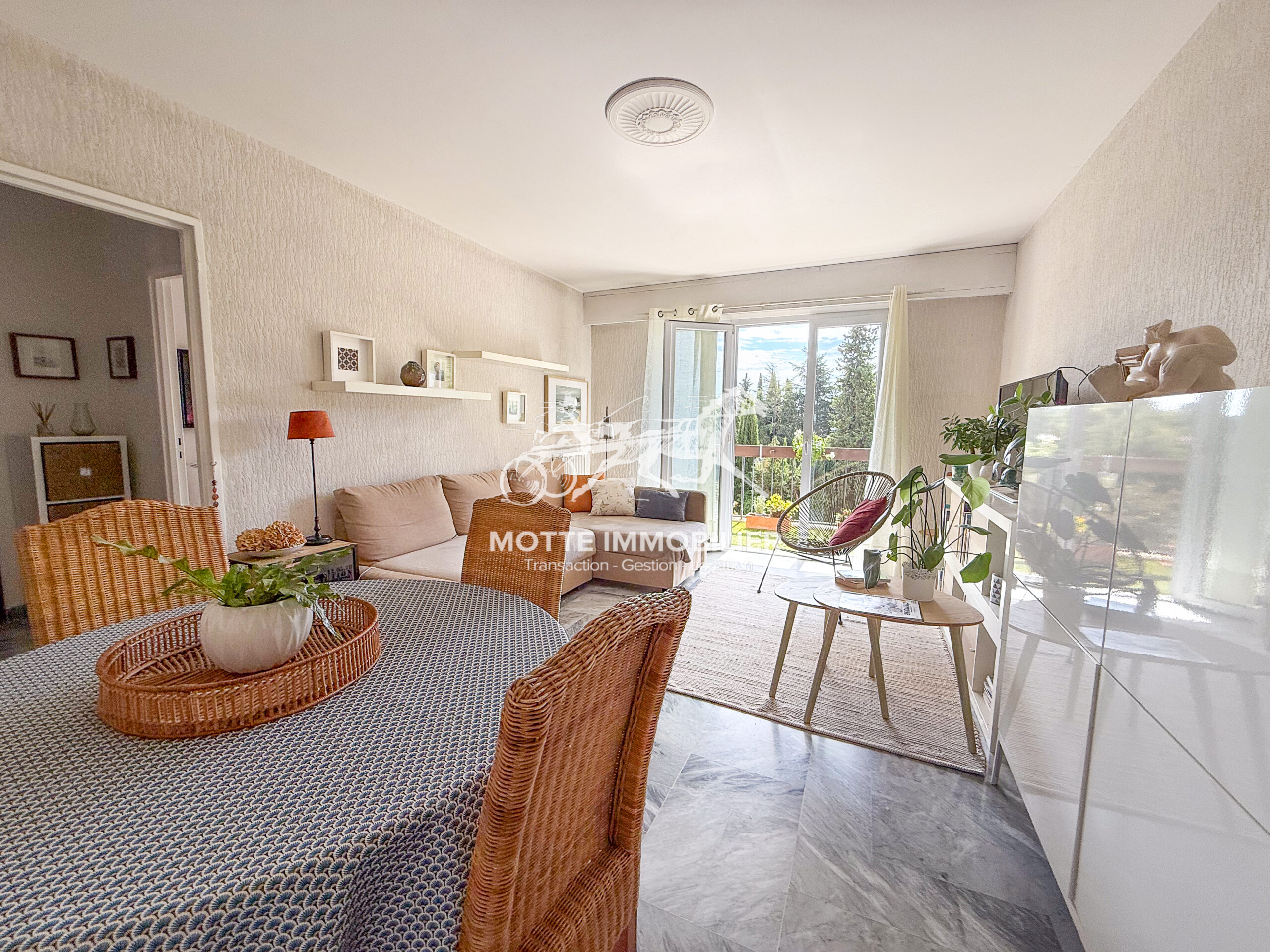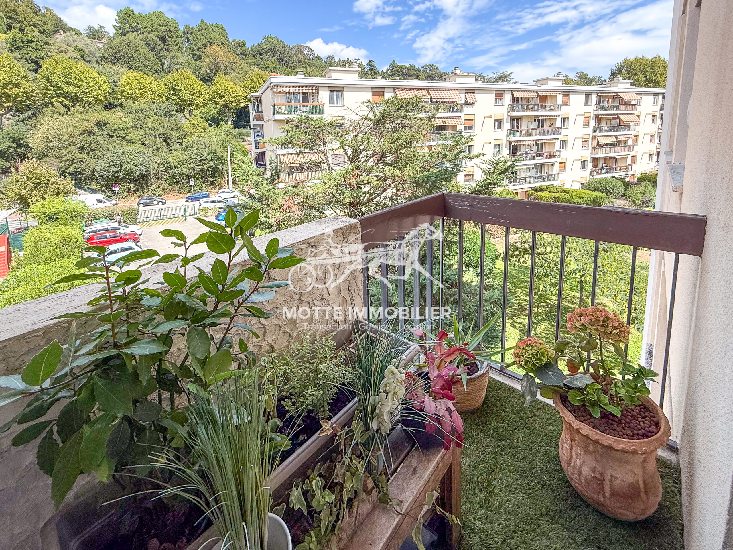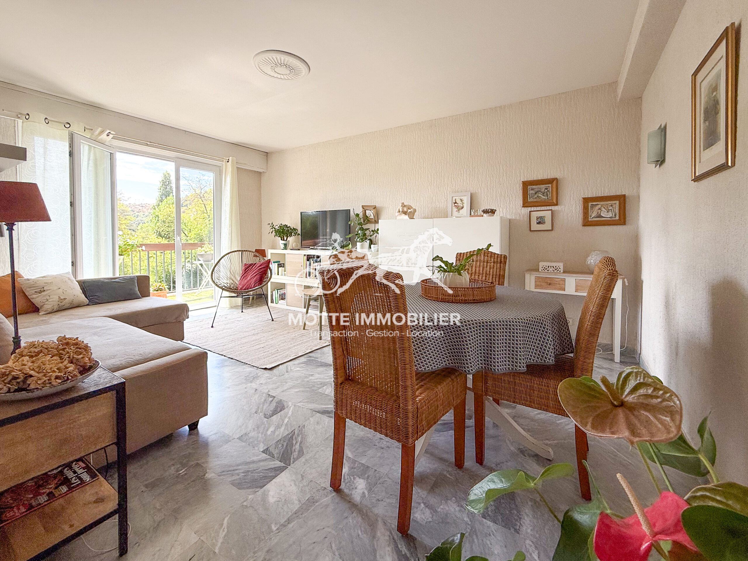 QUARTIER FERRAYONNES – APPARTEMENT 3 PIECES DE 62M2 TRAVERSANT AVEC DOUBLE BALCON AU 3ème ETAGE D’UN IMMEUBLE SECURISE ET CALME AVEC VUE DEGAGEE SUR JARDIN.